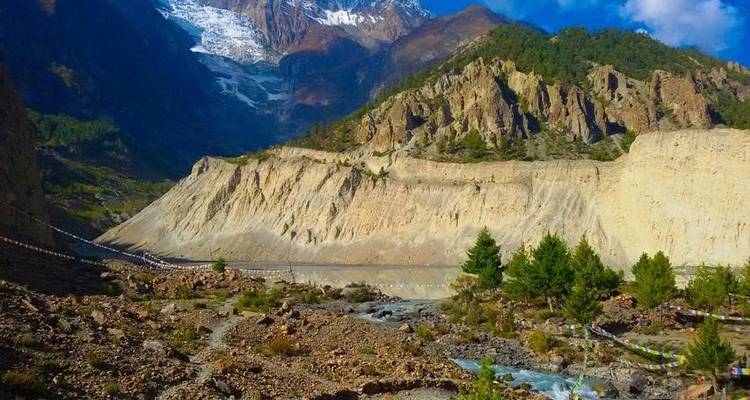 - Steek de Adha Khola over naar Shertung en Chalish
