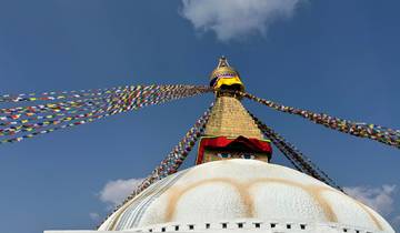Ontdek Kathmandu's spirituele erfgoed in één dag: eeuwenoude architectuur op het Durbar-plein, panoramische uitzichten vanaf Swayambhunath, heilige rituelen bij de Pashupatinath-tempel langs de Bagmati-rivier en de indrukwekkende Boudhanath-stupa. Lokale gidsen begeleiden je tot 16:30 uur.