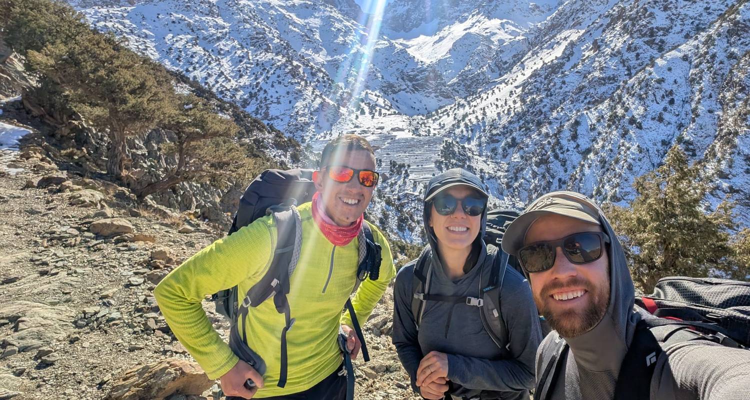 Ik heb een prachtige 7-daagse trektocht door het Atlasgebergte gemaakt. Ik voel me gelukkig dat ik de kans heb gekregen om de drukke toeristische gebieden te ontvluchten en mezelf onder te dompelen in de authentieke Berbercultuur van de Hoge Atlas. Het landschap was prachtig. Ik vond het geweldig om alle kleine dorpjes langs de route te ontdekken. Mijn gids, Ibrahim, was absoluut fantastisch - vriendelijk, makkelijk in de omgang en professioneel. Hij is opgegroeid in deze bergen en gaf een uniek kijkje in de plaatselijke cultuur, wat ik erg waardeerde. Onze kok, Iahsen, was zeer getalenteerd en ik voelde me gelukkig dat ik elke dag van zijn heerlijke maaltijden kon genieten. Ik heb de flexibiliteit van het Amazigh Voyage team tijdens de reis erg gewaardeerd. Toen mijn bagage een aansluitende vlucht miste, zorgden ze ervoor dat ik later kon vertrekken zodat ik het kon ophalen, en ze pasten mijn reisschema naadloos aan toen ik besloot dat de omstandigheden te slecht waren om de Toubkal berg te beklimmen. Omdat ik reisde tijdens een koude periode eind december, was de reis af en toe uitdagend. Je verblijft in authentieke Berberse huizen die soms geen warmte of warm water hebben, dus het is essentieel om je spullen goed in te pakken en flexibel te blijven als het weer een routewijziging noodzakelijk maakt. Voor de logistiek raad ik aan om licht in te pakken omdat de bagage per ezel wordt vervoerd, hoewel het personeel me vriendelijk toestond om spullen op te slaan die ik niet nodig had voor de tocht. Voor mij was dit een perfect, authentiek avontuur. Grote dank aan het team van Amazigh Voyage voor al hun harde werk en gastvrijheid.
