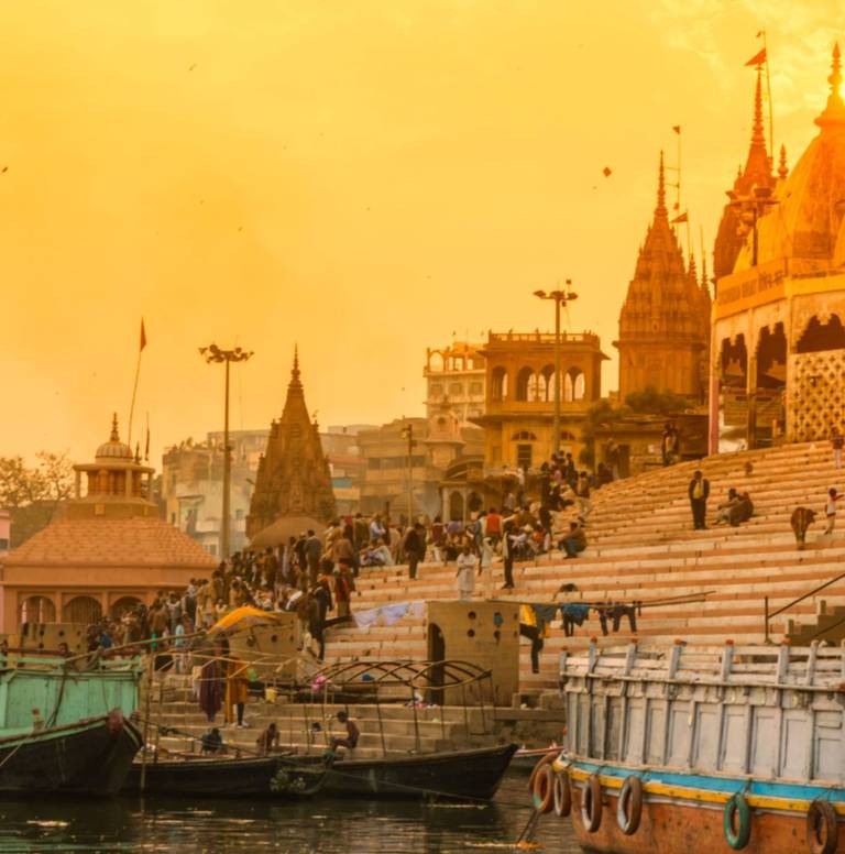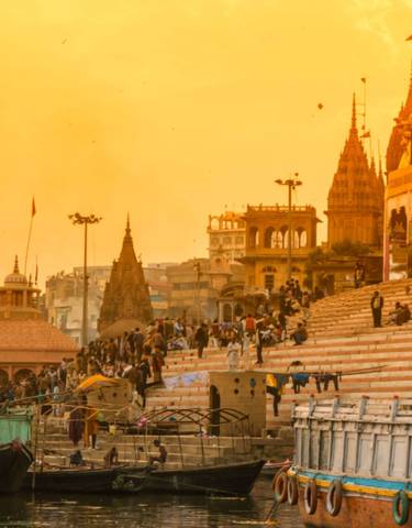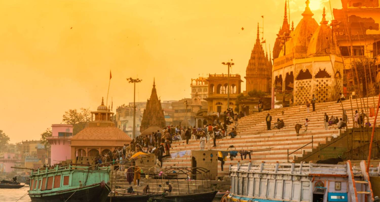 Driedaagse spirituele reis langs vier belangrijke tempels in Varanasi en boeddhistische locaties in Sarnath. Met boottochen bij zonsopgang op de Ganges, avond-aarti-ceremonies, bezoeken aan de Dhamek-stoepa en het Archeologisch Museum. Inclusief comfortabel driesterrenverblijf.