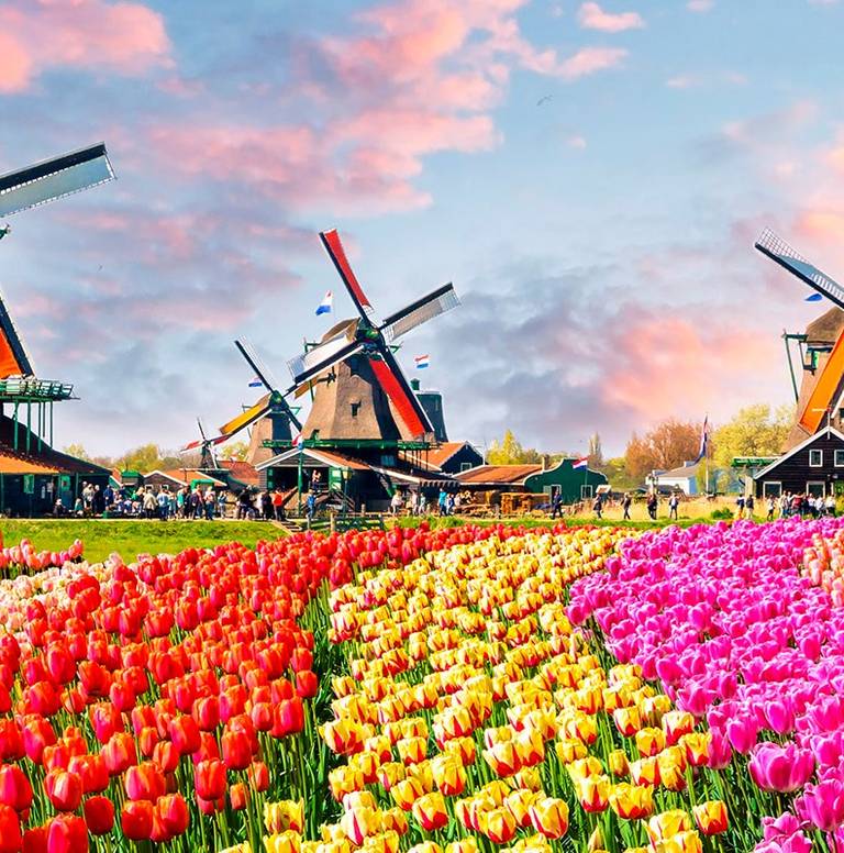 Hotel MS France vaart door de Rijndelta van Antwerpen naar Amsterdam, met stops in Rotterdam en Volendam. Deze vijfdaagse reis is inclusief alle maaltijden en drankjes, met optionele bezoeken aan de Keukenhof en de Zaanse Schans.