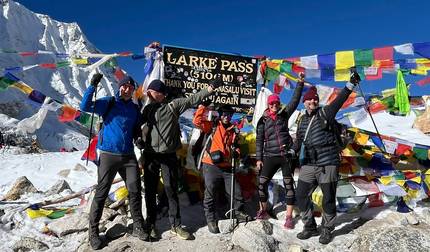 - Dag 11 Trek naar Bimtang (3.750m/12.303ft) via Larkya La Pass (5.106m/16.929ft)