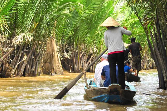 - Boot door de Mekong Delta en bezoek de lokale bevolking