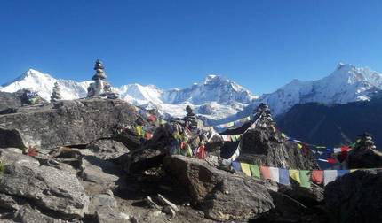 - Dag 14 Wandeling naar Gokyo RI (5483m)en terug naar Gokyo Lake, 4 uur (overnachting in hotel met ontbijt,