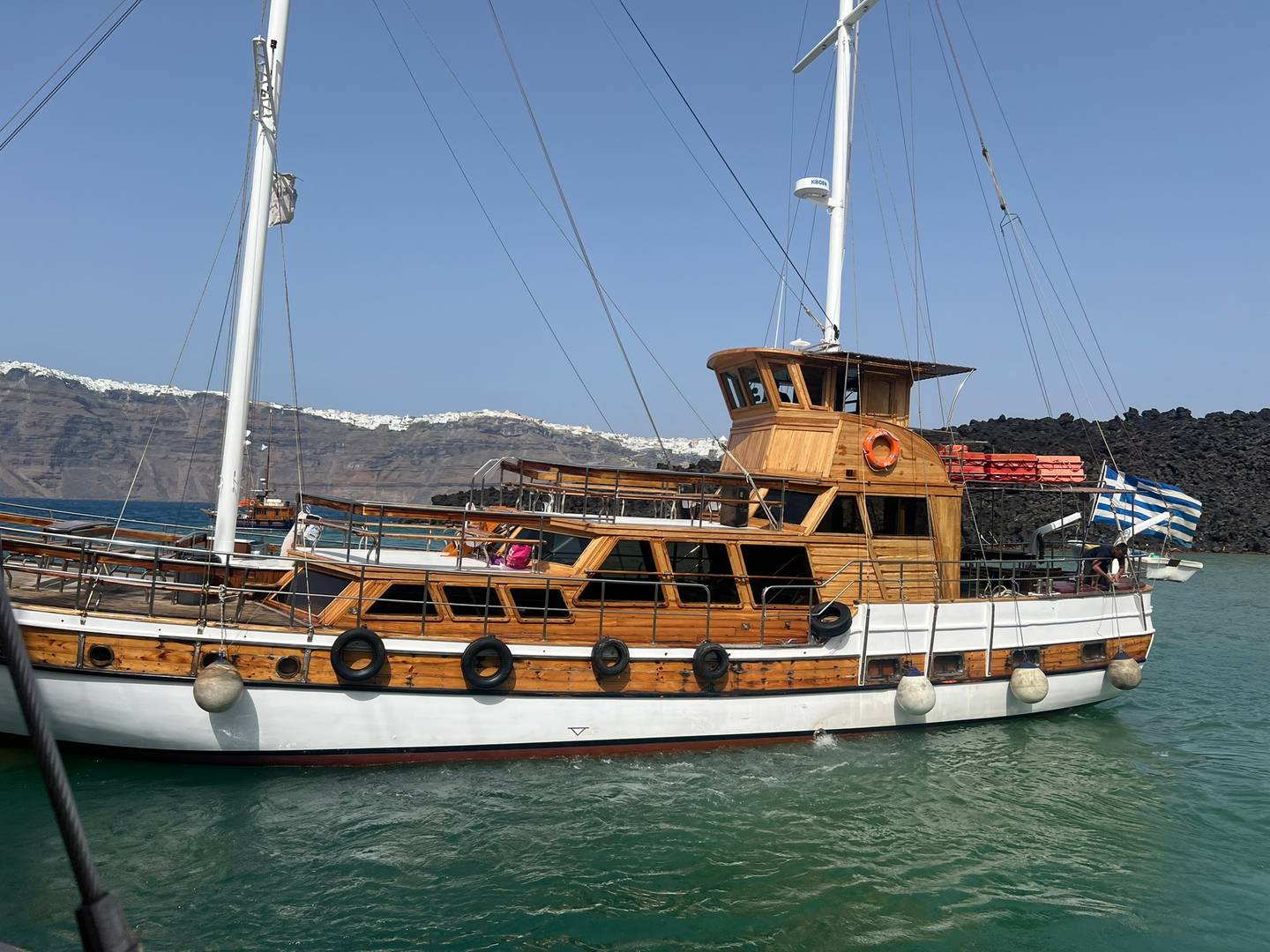 - Dag 4 Santorini - Het eiland van Lava - Houten bootje Regelmatige Zonsondergang Boottocht (6 uur)