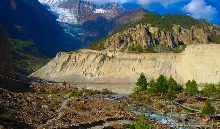 - Steek de Adha Khola over naar Shertung en Chalish
