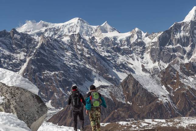 - Steek de hoge Larkya La Pas over