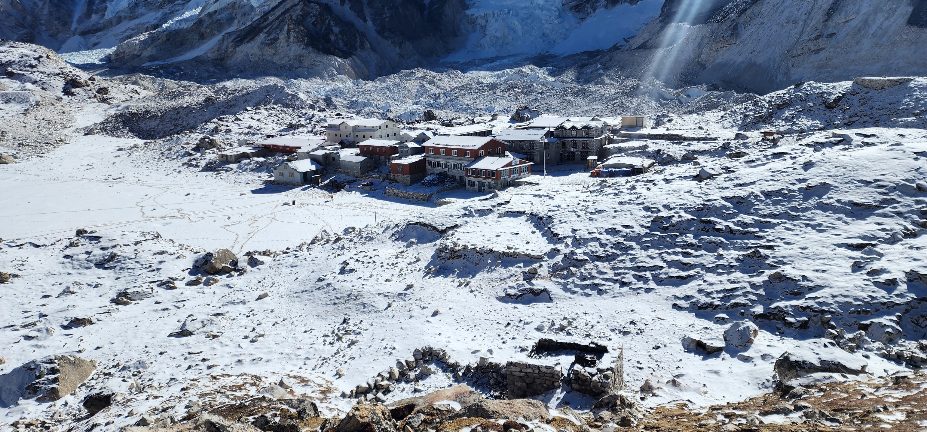 - Dag 7 Trek naar Gorak shep (5.180m) trek naar EBC & overnachting in Gorekshep Duur 7-8 uur.