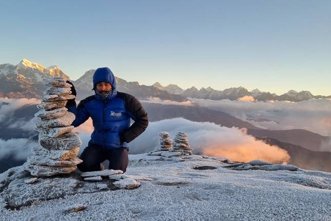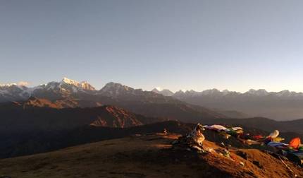 - Bekijk de zonsopgang over Numbur Himal vanuit Jase Bhanjyang