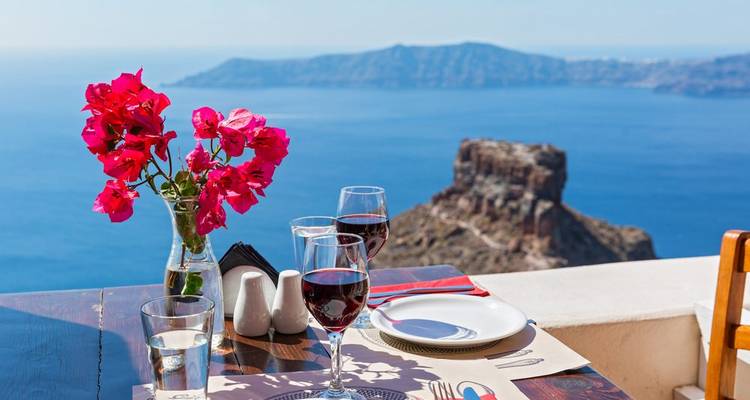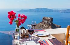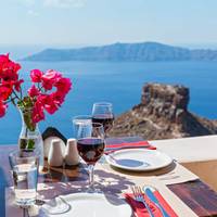 - Geniet van een diner bij zonsondergang in het dorp Oia op Santorini