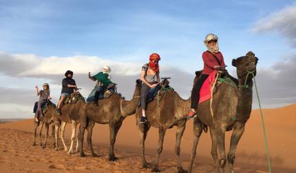 - Rijd op kamelen en bekijk de zonsondergang in de Sahara