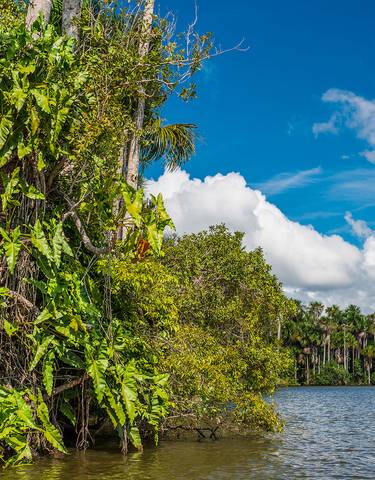 Het spiegelgladde Sandovalmeer en de spectaculaire ara-bijeenkomsten bij de Chuncho-kleilikplaats laten Tambopata van zijn beste kant zien. Reuzenwaterhonden, prehistorische hoatzins en verschillende apensoorten leven hier in vrijheid.