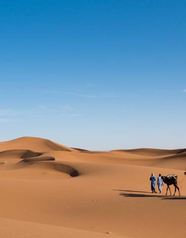 Zevendaagse reis langs de hoge duinen van Merzouga, de indrukwekkende Todrakloof en traditionele dorpen zoals Rissani. Je maakt kameelritten, overnacht in luxe woestijnkampen en bezoekt oude kasbahs in de Sahara.